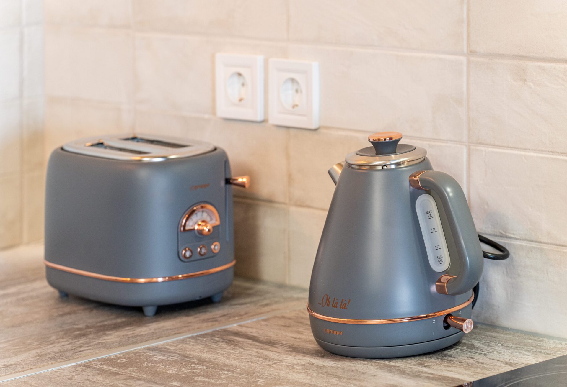 • a kitchen with fridge, stove, oven and coffee maker for effortless meal preparation,